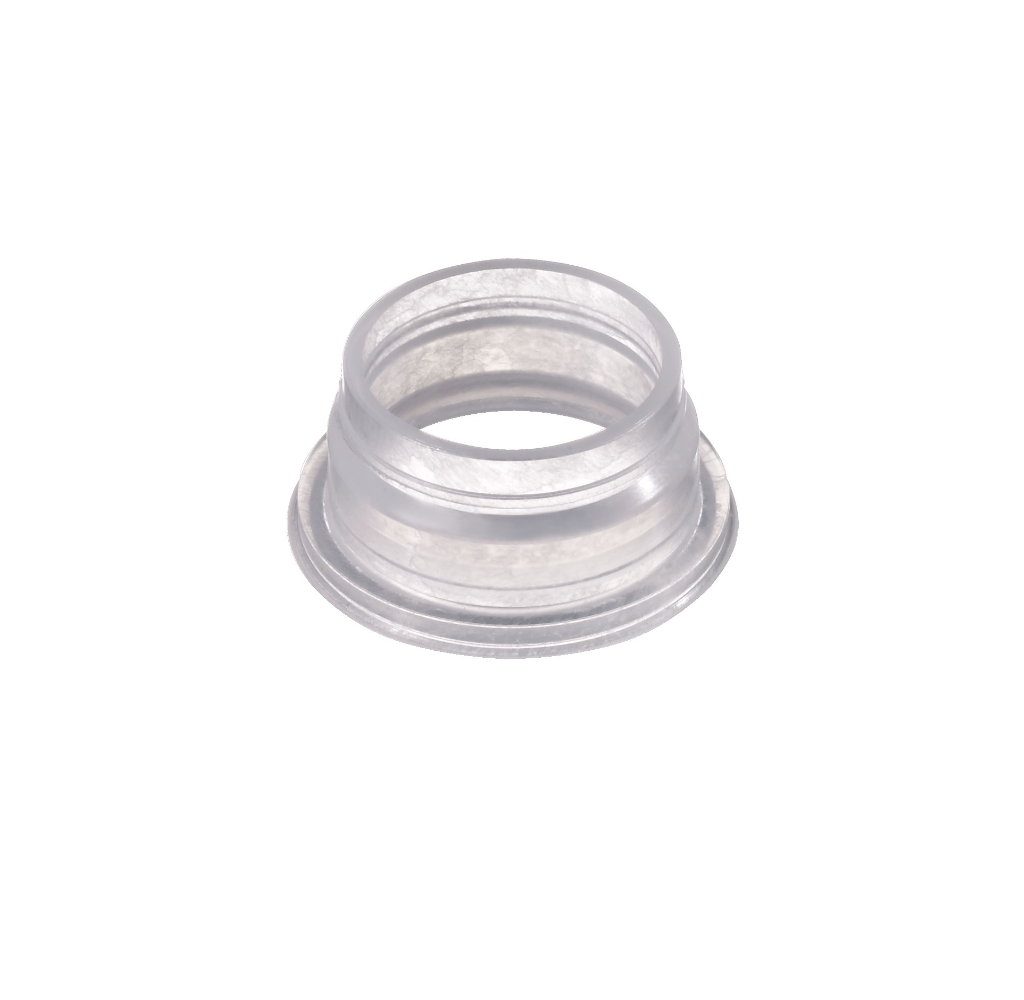 Natúr LLDPE-ből gyártott kiöntőgyűrű, mely DIN 168 – GL 28 szerinti menettel készített aponorm® gyógyszeres üvegekhez alkalmas.