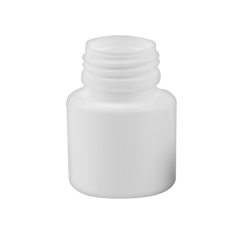 A fehér színű palack HDPE-ből készült, helyettesítési megoldásokhoz. Optimális csomagolási kombináció a tanúsított gyermekbiztos zárószerkezettel, PP28-as piros színű kupak.(33742)