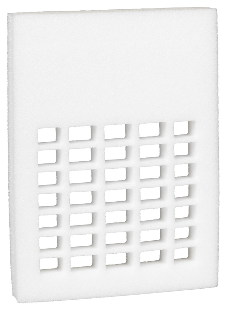 Perforált kartonmátrix a buborékfólia stabilizálására (hidegregyesztés) töltés közben.